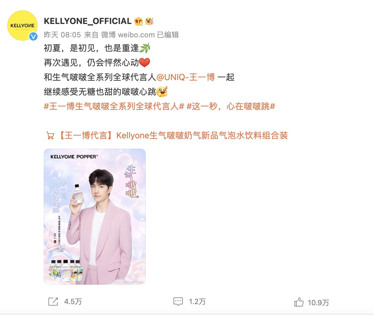 近日,新銳飲料品牌KELLYONE宣布升級(jí)王一博為生氣啵啵全系列「全球」代言人,在這個(gè)初夏延續(xù)“這一秒,心在啵啵跳”的每個(gè)甜蜜瞬間;乜唇,KELLYONE動(dòng)作頻頻,半個(gè)月內(nèi)連推兩款「氣泡系列」新品,前有三度半氣泡酒,后有生氣啵啵奶氣,兩款產(chǎn)品僅一個(gè)月內(nèi)就迅速打開了知名度,受到了不少年輕消費(fèi)者的喜愛。