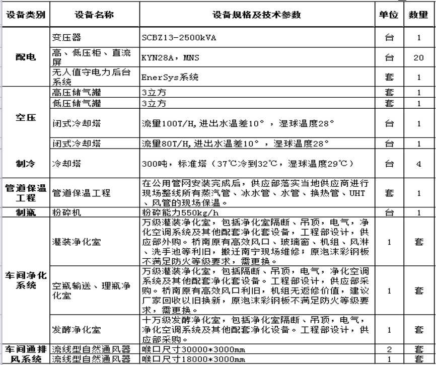 本次宏勝飲料集團(tuán)南寧恒楓食品項(xiàng)目熱罐線輔助設(shè)備需求見下表,內(nèi)容包括設(shè)備供應(yīng)、指導(dǎo)安裝調(diào)試和售后服務(wù)等。詳細(xì)需求待報(bào)名且審核通過后與相應(yīng)技術(shù)部門對(duì)接。